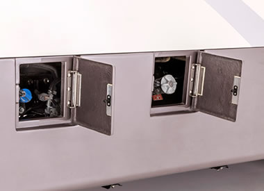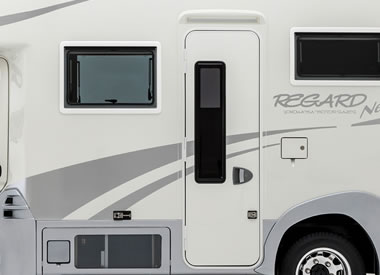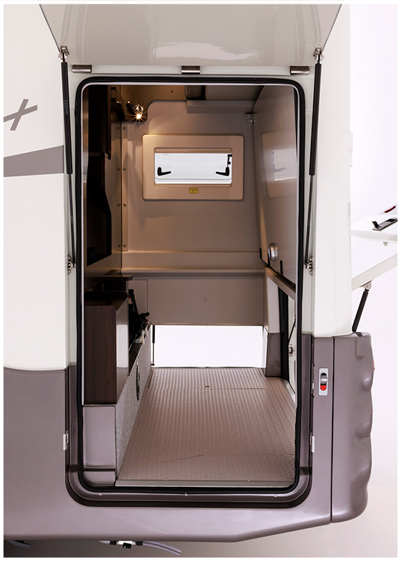 リヤ大型収納庫には右サイド、左サイド、リヤの3つの扉を装備。どんなシーンでも取り出しやすく使いやすい仕様になっています。