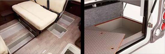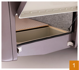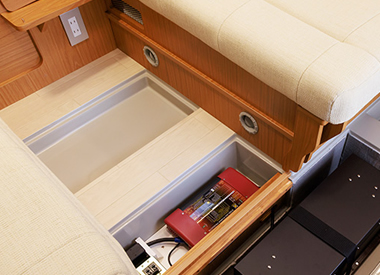モノコックFRP床フロアに4箇所の床下収納を設置。貴重品などを入れるセキュリティーボックスとしてもお使いいただけます。