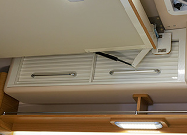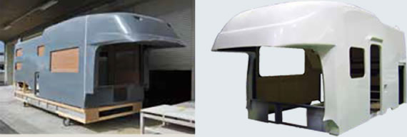 タオルや衣類など小物を収納するのに便利なオーバーヘッドコンソール部分も、重心を軽くするためにFRPで作られてい出す。