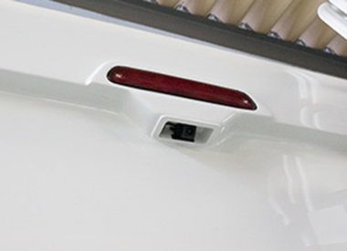 標準でバックカメラをビルトイン。見やすくするために上から見下ろせる映像角度にしてあります。(モニター別途)