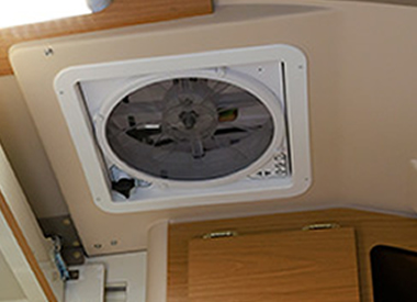 室内の換気をするための吸排気型ベンチレーターを標準装備オプションで雨でも使えるマックスファン(OP)に変更可能。