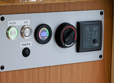 ダイニング、キッチン、リア収納にも設置している各所コンセント内部電源インバーターや外部からの家庭用電源を使用できます。