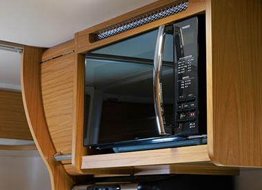 キッチン上部の収納棚部分にターンテーブル無しの電子レンジをオプションで設置することができます。