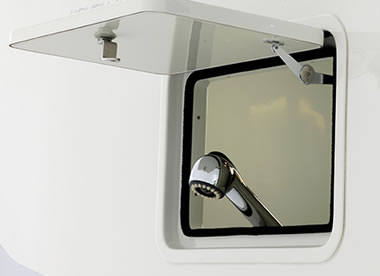 全窓跳ね上げ式のスモーク式アクリル窓を標準装備。FRP断熱ボディーの強みとアクリル二重窓でさらなる断熱強化をしています。