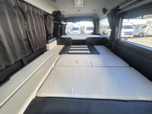 31年 フジカーズジャパン製FOCS DS-F 2.7G 禁煙車 ナビ スマートキー ETC バックカメラ 2サブ 電圧計 後席モニター リアスピーカー 走行時リアクーラー&ヒーター シンク 冷蔵庫 メインサブ切替スイッチ 照明 遮光カーテン 外部・走行充電 サイドオーニング バックカメラ LEDヘッドライト パワスラ (5593)