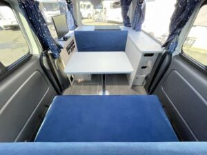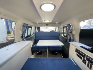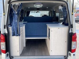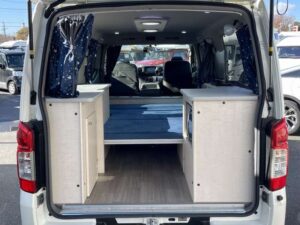 H27年 ラクネル製ワンオフキャンピングカー NV350キャラバン 2WD 4ナンバー ナビ ドラレコ ETC Bカメラ スマートキー ソーラー&外部・C-TEK走行充電 バックカメラ 2サブ 電圧計 1500Wインバーター 後席TV Rスピーカー 走行時リアクーラー&ヒーター シンク冷蔵庫 電子レンジ (5250)