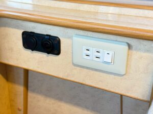→ 車中泊でも安心の電力システム。350Wインバーター+バッテリー電圧計+LED照明