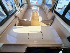 → オールシーズン快適な車内空間。テーブル+リアスピーカー+フリップダウンモニター