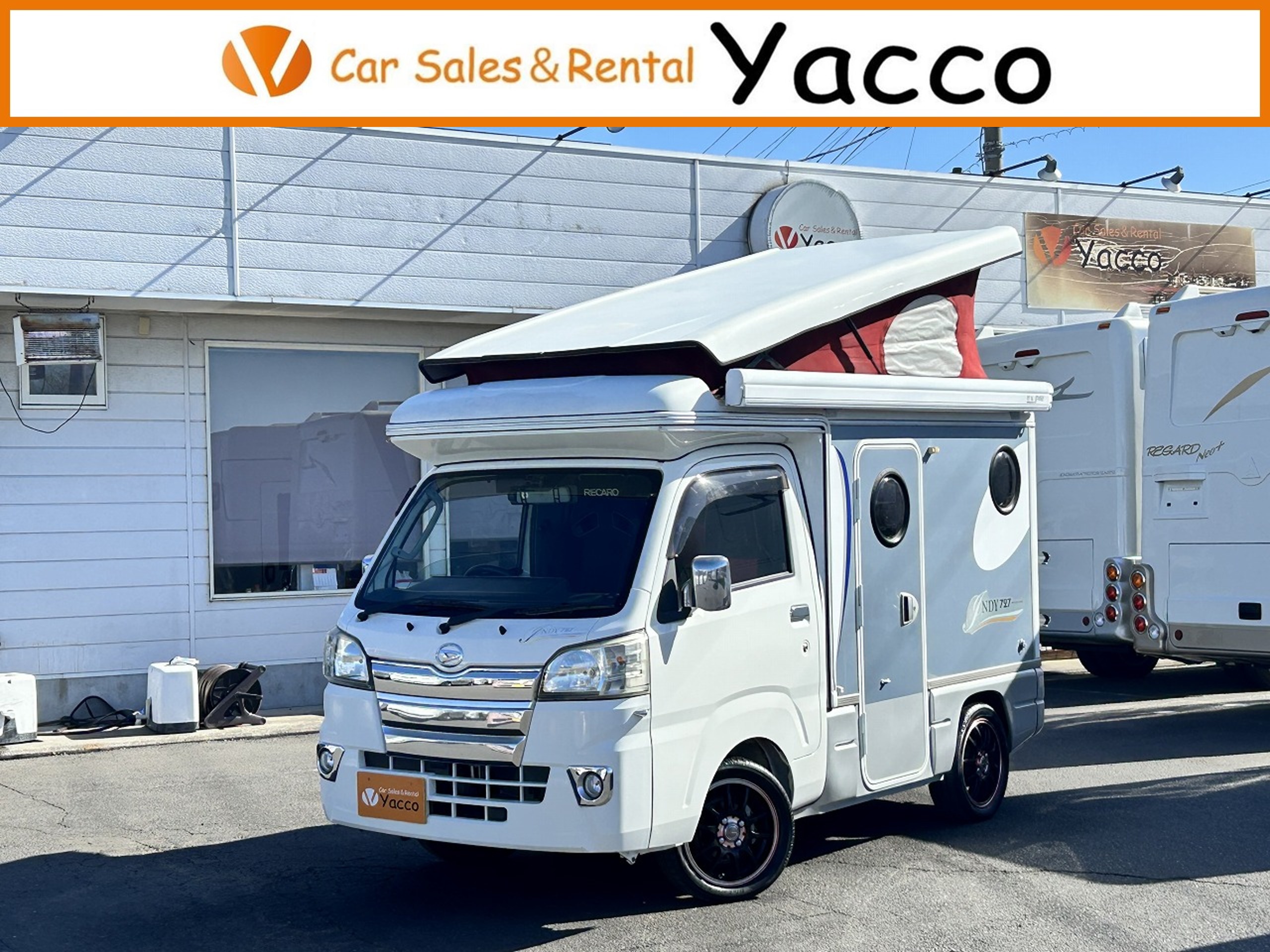 H29年 インディアナRV製インディ727 禁煙 ハイゼットT 長さ339幅147高さ197 外部・走行充電 オーニング サイクルキャリア サブバッテリー 電圧計 300Wインバーター 後席TV FFヒーター シンク カセットコンロ 社外14AW フォグランプ レカロシート 7型ナビ 前後ドラレコ ETC バックカメラ キーレス(9345)