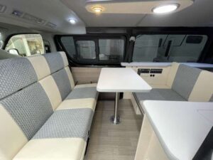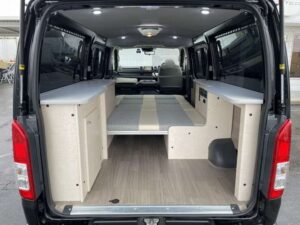 R3 トヨタモビリティ製アルトピアーノ ハイエースV 2WD 2.0G 1オーナー 禁煙車 4ナンバー セーフティセンス ナビ 前後ドラレコ 全周囲カメラ ETC キーレス サブB 外部・走行充電 LEDヘッドライト コーナーセンサー 1500Wインバーター 走行時リアクーラー シンク 照明 前後強化ショック デジタルインナーミラー(0179)