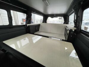 R3 フジカーズジャパン製FOCS エスパシオ+UP ハイエース 2WD 2.0G 1オーナー 禁煙車 セーフティセンス ナビ スマートキー バックカメラ サブバッテリー 外部・走行充電 電圧計 400Wインバータ シンク コンロ 後席モニタ リアスピーカー メインサブ切替 LEDヘッドライト ハーフレザーシート 走行時リアクーラー&ヒーター(5497)
