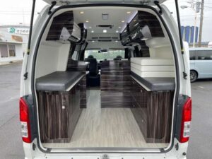 R3 ATV群馬製 RSプレミアム ハイエースバン 4WD 2.7G ナビ 全周囲カメラ ETC 前後ドラレコ 3サブ 電圧計 ソーラー&外部・走行充電 1500Wインバータ 後席モニター Rスピーカー メインサブ切替 家庭用エアコン FFヒータ 走行時リアクーラー&ヒーター シンク 冷蔵庫 電子レンジ パワスラ LEDヘッドライト モデリスタエアロ 社外アルミ(1962)