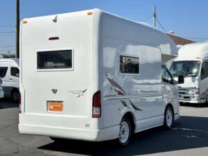R3 RVトラスト製 TR500 C-LH ハイエースW 2WD 1オーナー禁煙 セーフティセンス ナビ ETC S&Bカメラ 前後ドラレコ LEDライト フォグ Fスポイラー レカロシート リチウム200Ah 外部・走行充電 MAXFAN 1500Wインバータ 後席TV 家用エアコン FF 走行時リアクーラー&ヒーター シンク冷蔵庫 電子レンジ (2155)