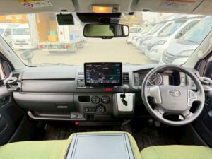 R3年 トイファクトリー グリーンバディ製 タイプA ハイエースバン FFヒーター 350Wインバーター サブバッテリー 走行充電 外部充電&電源 シンク 電子レンジ 11インチナビ トヨタセーフティセンス バックカメラ ETC クリアランスソナー(3220)