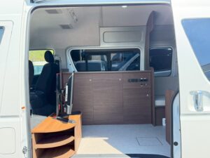 R5年 キャンピング8ナンバー ハイエースV サブバッテリー 350Wインバーター 走行充電 外部充電&電源 シンク 給排水タンク10L リアTV テーブル 社外ナビ トヨタセーフティーセンス パノラミックビュー パワースライドドア