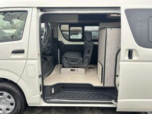 R7年 グリーンハンズ製 TACKLEmini ハイエース 2WD 2.0G 新規架装 禁煙 セーフティセンス ETC 全周囲カメラ 200Ahリチウムバッテリー 走行・外部充電 LEDヘッドライト 電圧計 2000Wインバーター ルーフエアコン FFヒーター 走行時リアクーラー シンク 冷蔵庫 電子レンジ (8778 )